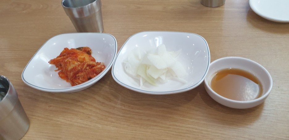 반찬은 무절임과 김치, 만두를 시키니 간장까지나왔습니다.
