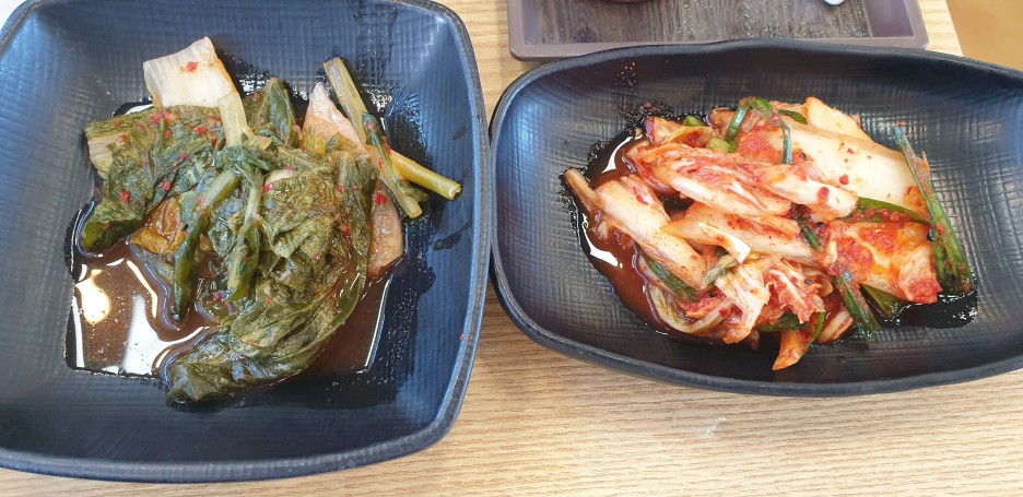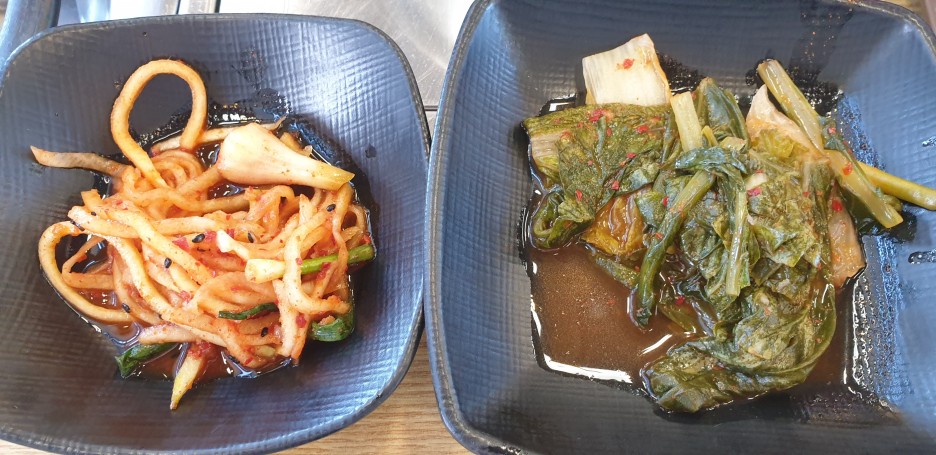 주문하면 나오는 반찬들 3종류이며, 열무김치, 배추김치, 무김치로 3가지 나옵니다.
