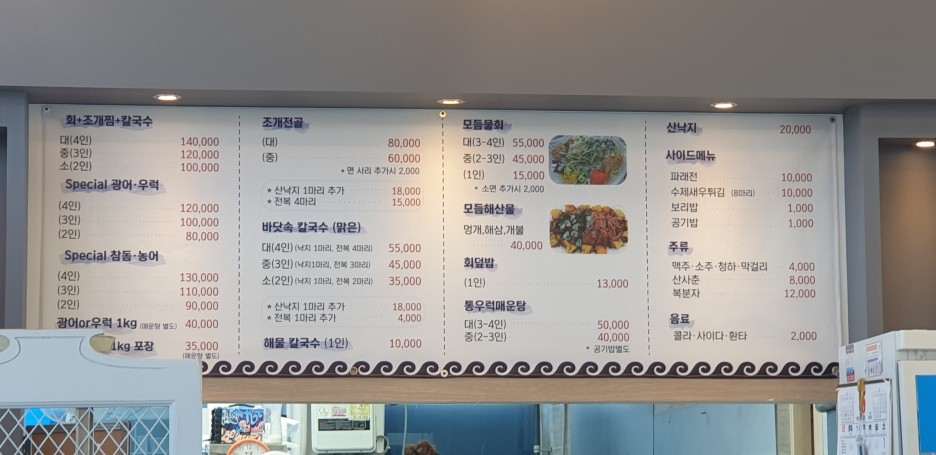 바닷속칼국수 2인 35,000원 3인 45,000원 4인 55,000원