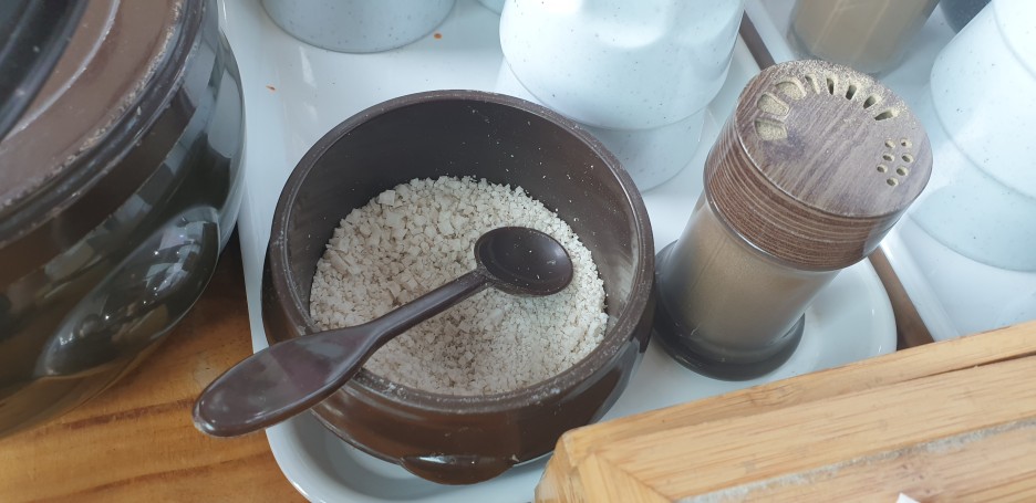 테이블에 비치된 구운소금과 후추를 적절히 넣어서 설렁탕에 넣어줍니다.