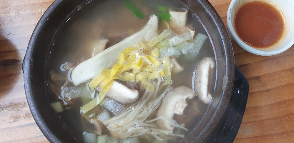 갈비탕입니다. 갈비조각은 미니조각으로 되어있으며 대략 10개정도 되는 것같습니다. 표고버섯, 팽이버섯, 계란 고명등이 올라와있습니다.