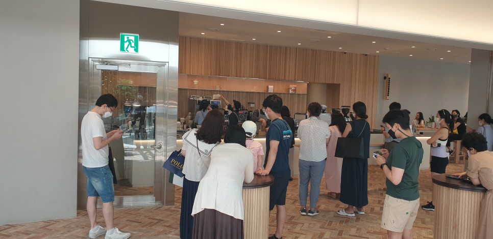 더현대서울점 5층에 올라가자마자 블루보틀여의도까페 에 도착하는 순간 두둥... 어마어마하게 줄서있더라구요.