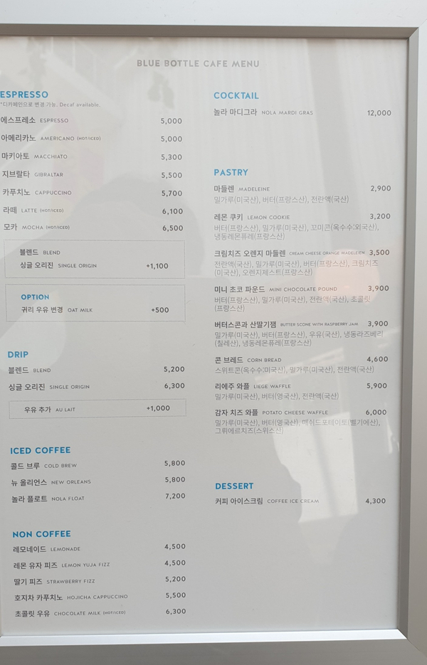 그래도 블루보틀만에 깔끔한 매력에 푹 빠지는 것같습니다.