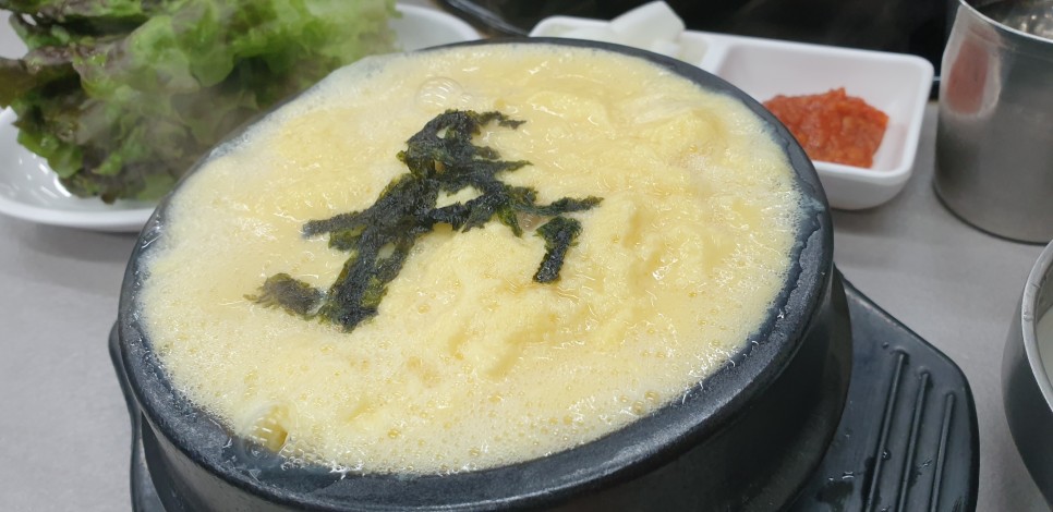 닭갈비가 기다리는 동안 술안주에 기가 막힌 계란찜을 나왔습니다. 촉촉하니 부드러운 계란찜 여기 이맛이 일품이지요