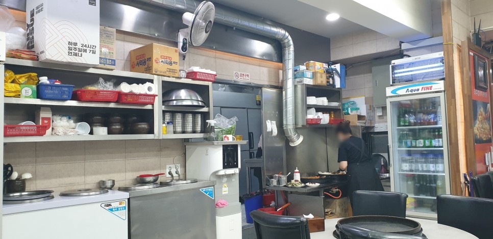 뒤로 주방쪽을 처다보아요~ 뒷면에서 배달용 음식을 구워주시고 계십니다.