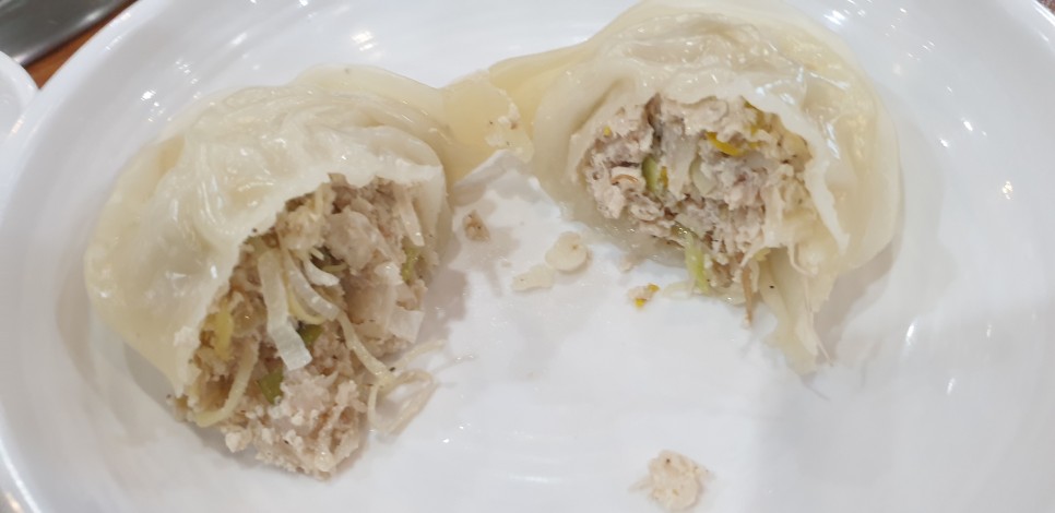 만두는 총7개가 나옵니다. 안에는 두부와 고기 숙주,파등이 배합되어 있는 맛 같습니다.