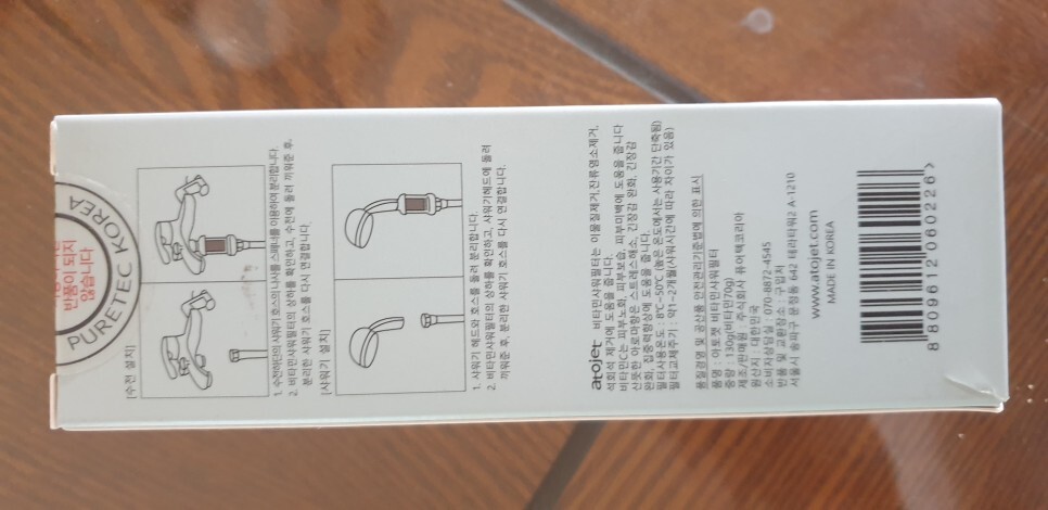 박스 후면에는 수전과 필터 결합방식을 설명하고 있습니다. 생각보다 어렵지 않습니다.