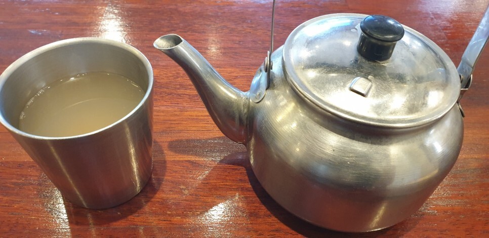주전자에 들린 면수가 나왔습니다.