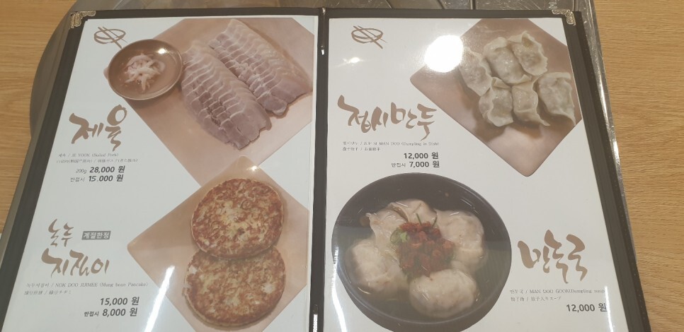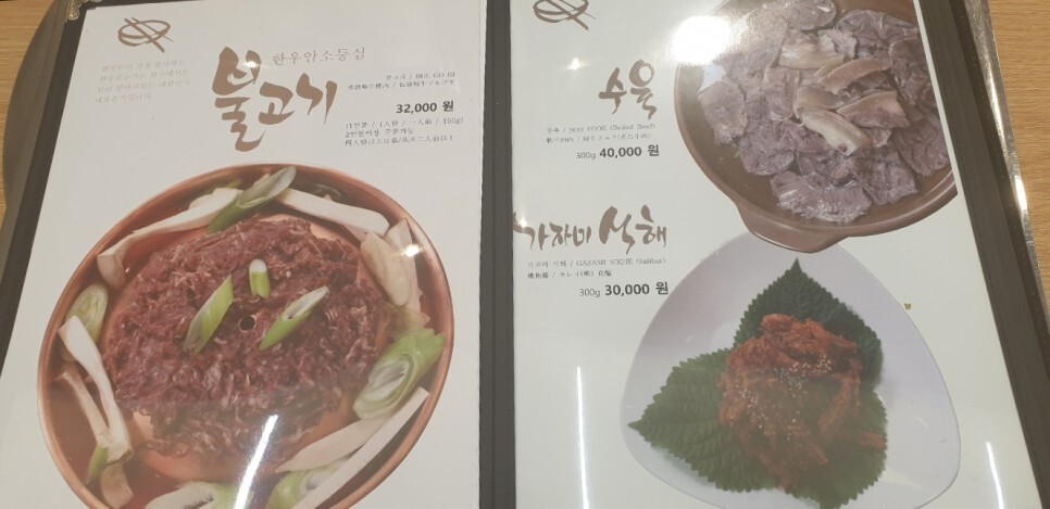 불고기32,000원 / 녹두지짐이 15,000원 / 접시만두 12,000원