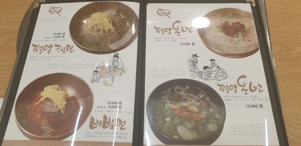 평양냉면 13,000원, 비빔면 13,000원 그외