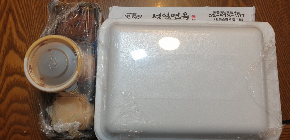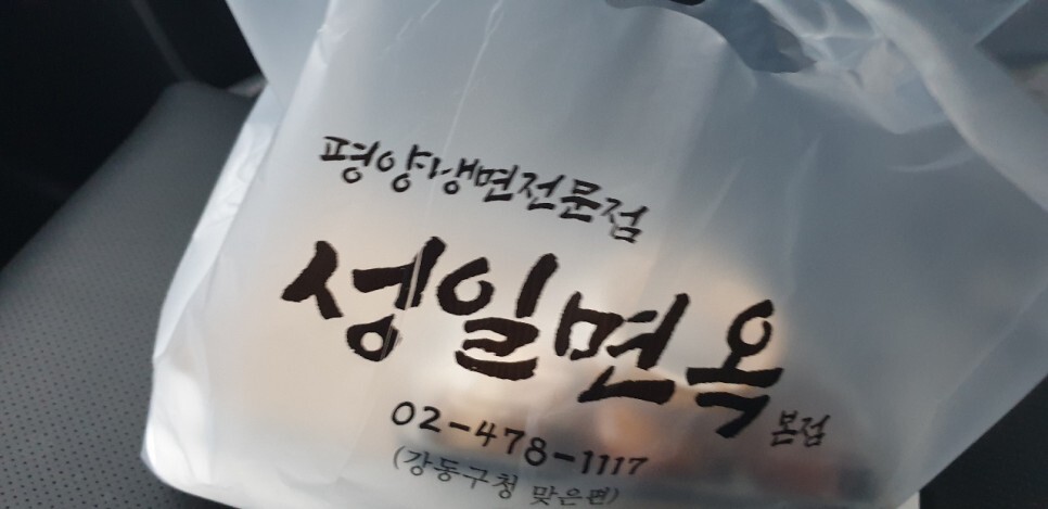 포장지에는 성일면옥이라고 적혀 있었으며, 평양냉면 전문점 이멘트 너무 좋아합니다.