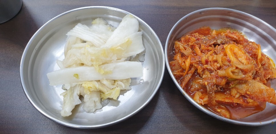 평양냉면집에서 김치두루치기 간판이 있는 것에 대해서 신기하게 여겼습니다.