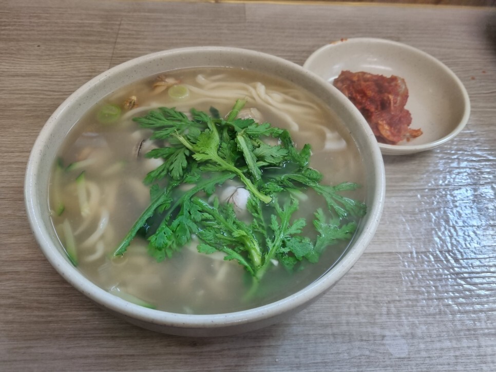 오씨칼국수에 손칼국수와 김치의 비주얼