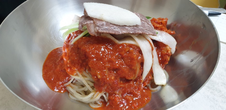 평양냉면집에서 잘안시키는 보기 드문 메뉴시켰습니다. 회냉면